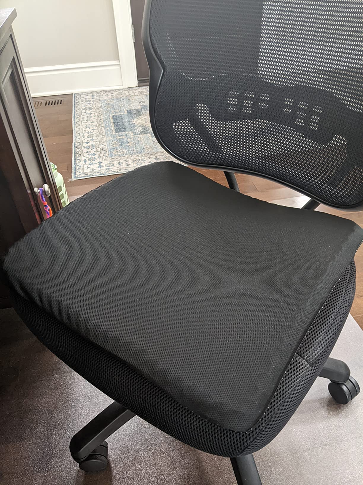 Es transpirable, no da calor y funciona en cualquier asiento. Desde el primer uso, sentarte se siente mejor.